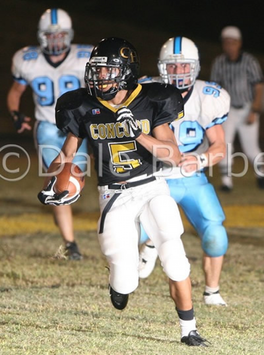 Smith would ramble 75 yards on Concord's opening drive to put the Spiders up 7-0 with Brandon Barnhardt's extra point. After a Piedmont punt Smith would add another long touchdown this time 76 yards. Concord would add another touchdown as quarterback Eric Brenk would find Evann Carpenter for a 45 yard touchdown. The first quarter would end with Concord up 20-0.